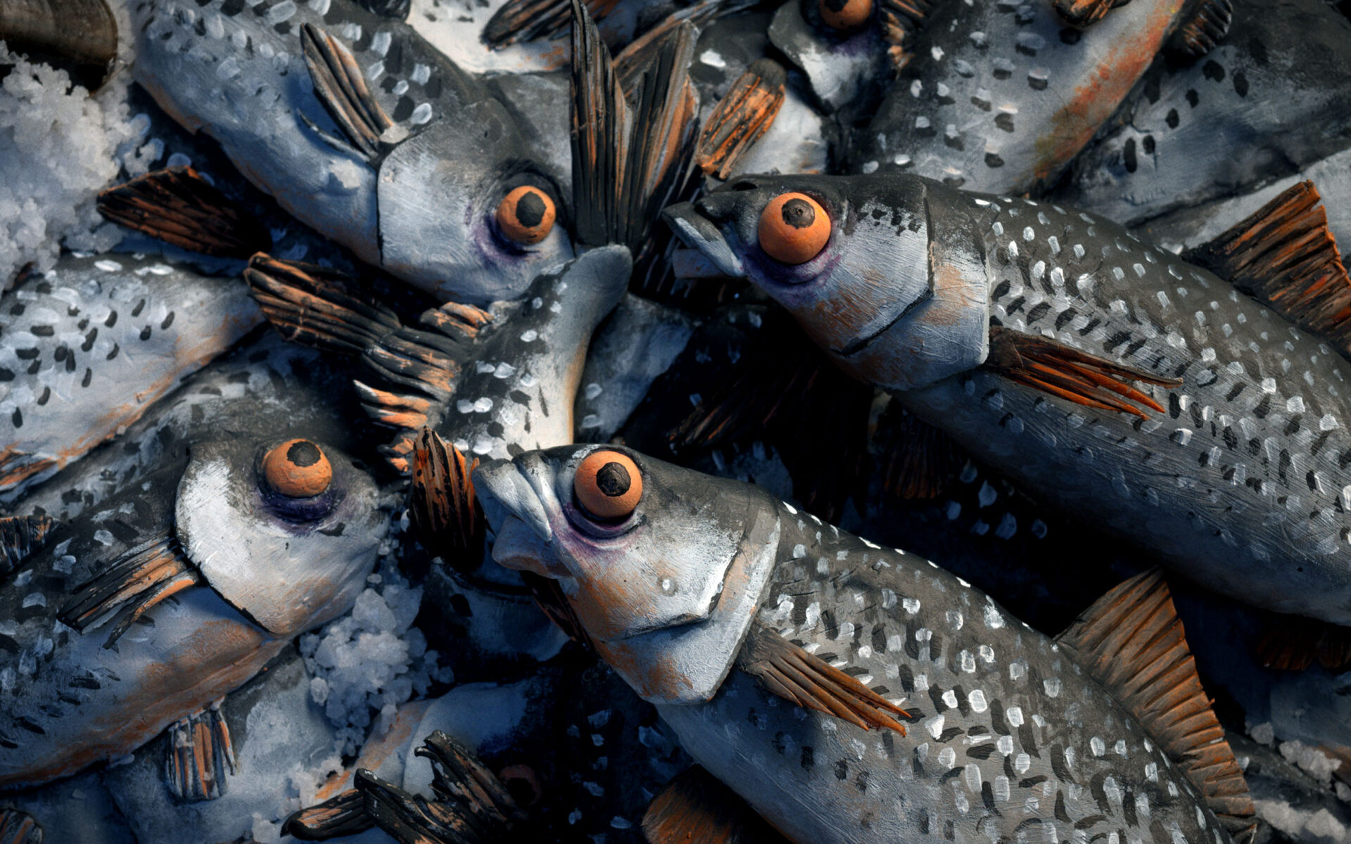 The supermarket is nearing its closing time, and the last customers are queuing for their turn at the fish counter. The agonizing wait offers a chance for existential reflection and a little song.