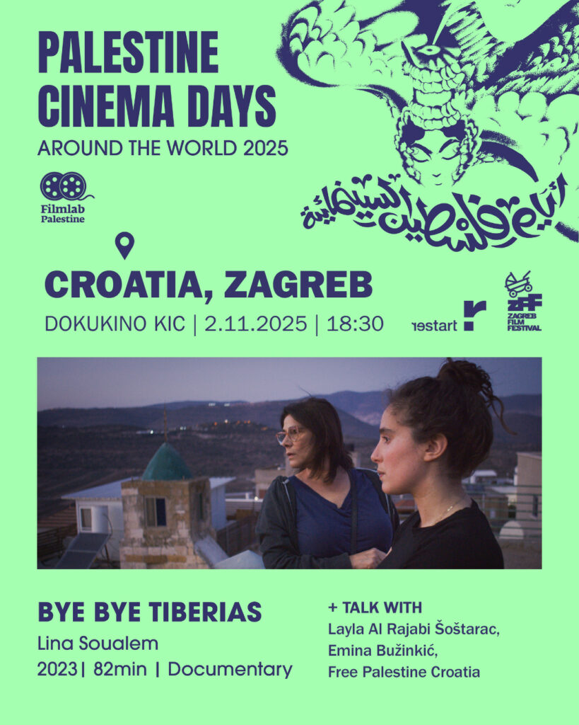 U suradnji Restarta, Inicijative za slobodnu Palestinu i ZFF-a, u nedjelju 2. 11. u 18:30 u Dokukinu KiC održat će se projekcija filma Zbogom Tiberijado, nagrađivanog dokumentarca redateljice Line Soualem i palestinskog kandidata za Oscara 2024.